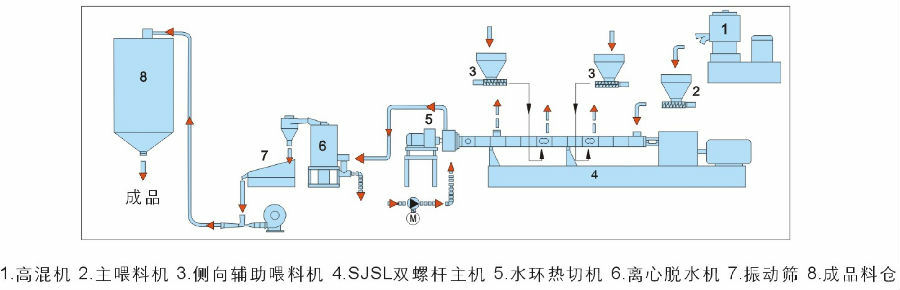 1、EVA、SBS類(lèi)彈性體造粒機(jī):EVA、SBS類(lèi)具有優(yōu)異的回彈性能,廣泛用于各類(lèi)包裝、建筑、工具、密封等產(chǎn)業(yè)中。通過(guò)雙螺桿混煉造粒后更具有各種優(yōu)異的特殊性能,采用水環(huán)模面或水下切粒方式是其理想的選擇。